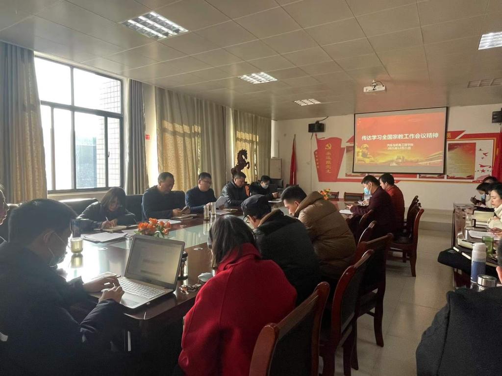 12月21日下午,开云体验官网入口集中学习全国宗教工作会议精神等相关文件。院长吕争、党总支副书记张礼涛、副院长曾勇、王平俊及全体教职工参加,党总支书记代翔主持活动。