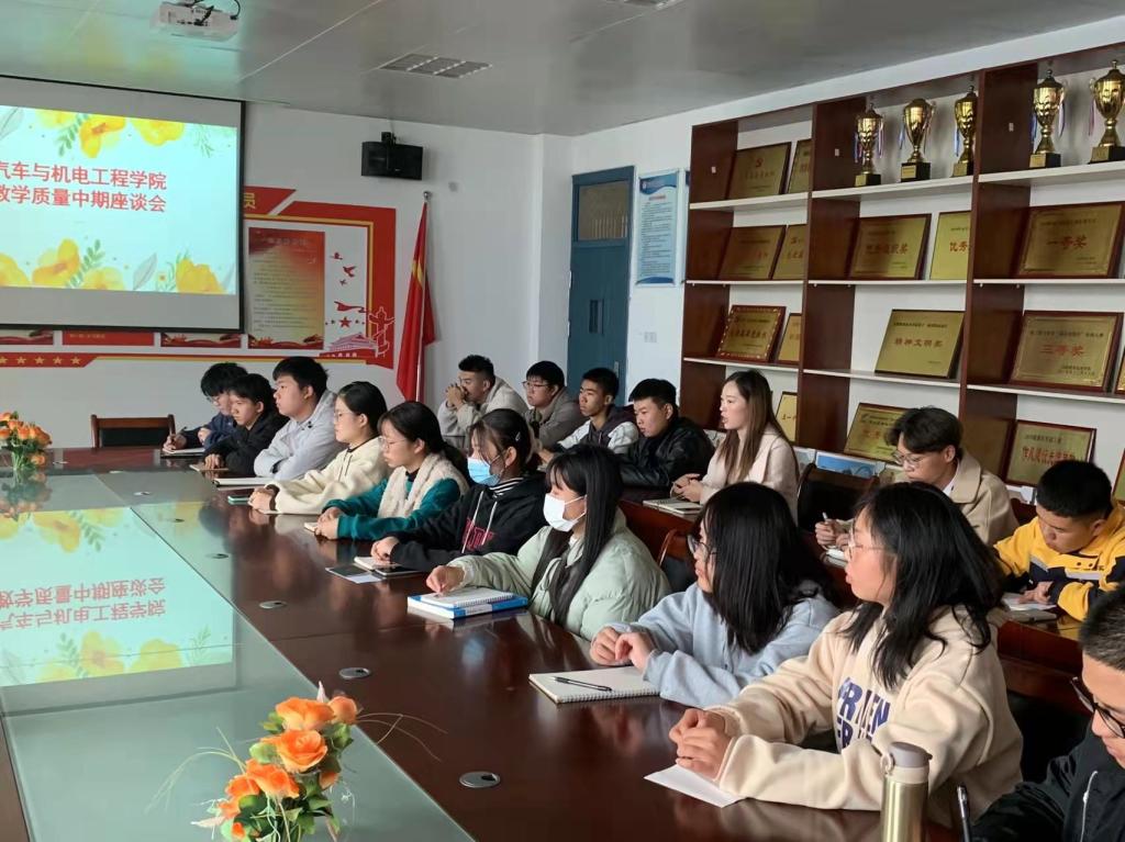 为进一步加强学院学风、教风建设,深化教育教学改革,提高人才培养质量,抓好“不忘初心、牢记使命”主题教育工作的落实,11月16日下午,开云体验官网入口召开2021-2022学年第一学期教学质量中期学生座谈会。院长吕争、自动化教研室主任周武郁、机电基础教研室主任杨自斌、汽车技术与服务教研室主任赵琨、以及学院各年级各专业学生代表参加,会议由副院长王平俊主持。