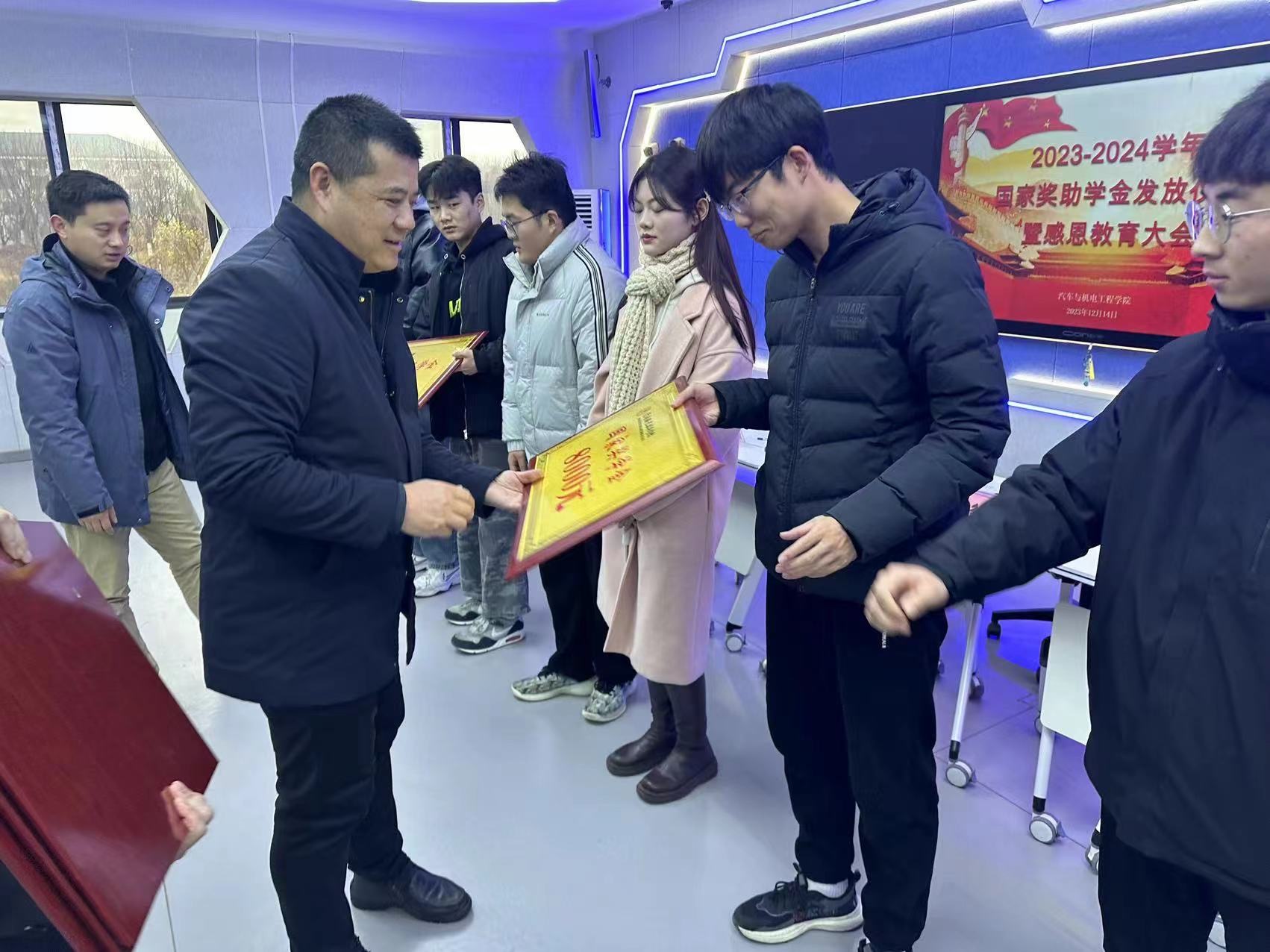 为进一步落实立德树人根本任务,体现党和政府对家庭经济困难学生的关怀,深入推进资助育人工作,激励广大学生勤奋学习、努力进取,开云体验官网入口于12月14日下午,在2007智慧教室举行2023年国家奖助学金发放仪式暨感恩教育大会。院长吕争、团总支书记李明、学工办主任翟志方、资助专干吕莉、全体辅导员及2022级、2023级受资助学生代表参加活动,活动由副院长曾勇主持。