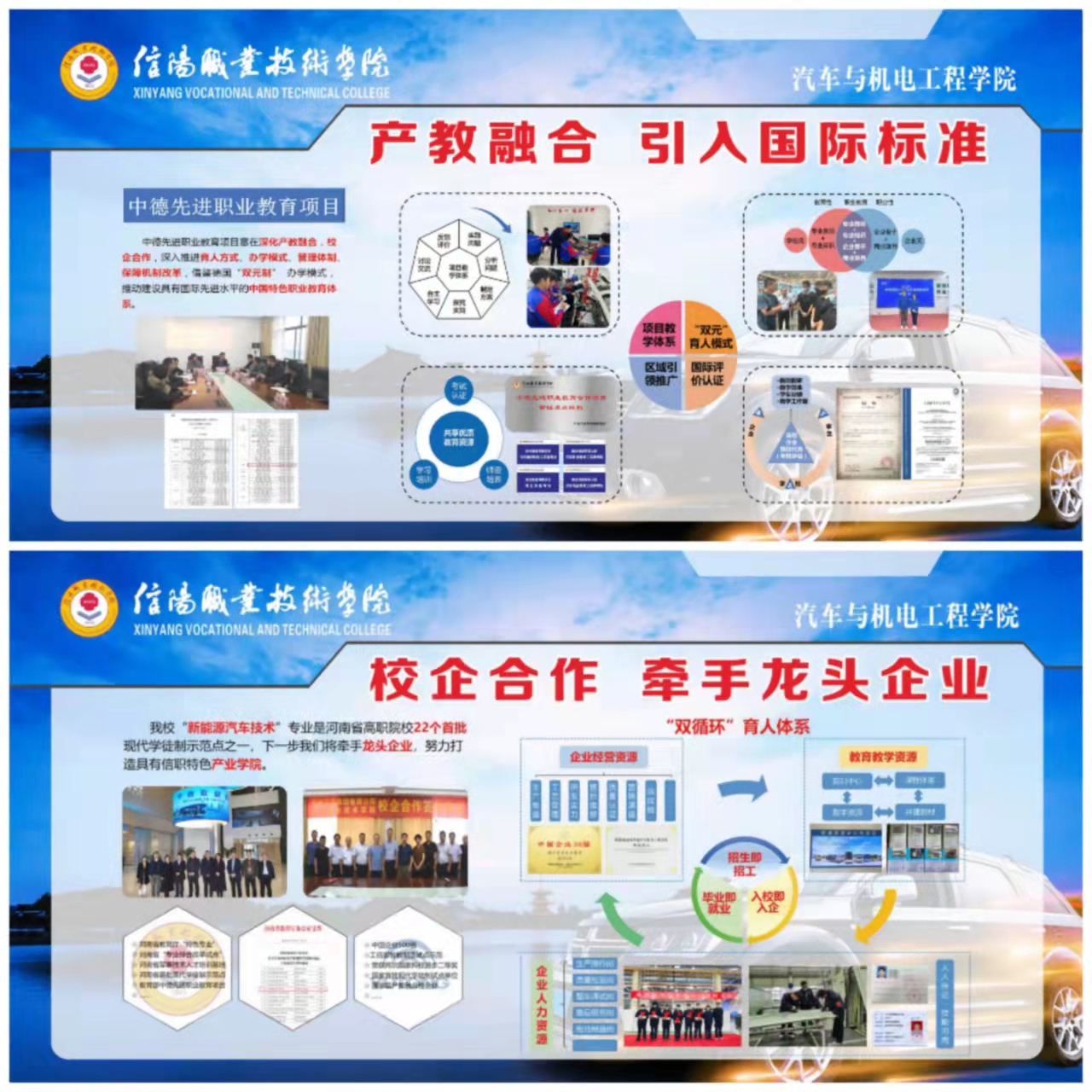 我校“新能源汽车技术”专业是河南省高职院校22个首批现代学徒制示范点之一,我们牵手龙头企业,努力打造宇通产业学院、明阳智能产业学院等特色学院。