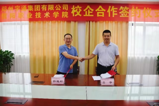 我校“新能源汽车技术”专业是河南省高职院校22个首批现代学徒制示范点之一,我们牵手河南宇通、无锡智能半导体、上海三菱电梯、昆山杰士德集团、昆山沪光集团龙头企业,开展订单班、冠名班。深入实施“把企业生产资源转化为教育教学资源,把教育教学资源转化为企业人力资源,再把人力资源转化为企业生产资源”,真正实现学生“入学即入职、学习即上岗、毕业即就业”校企深度融合,努力打造具有信职特色的产业学院。